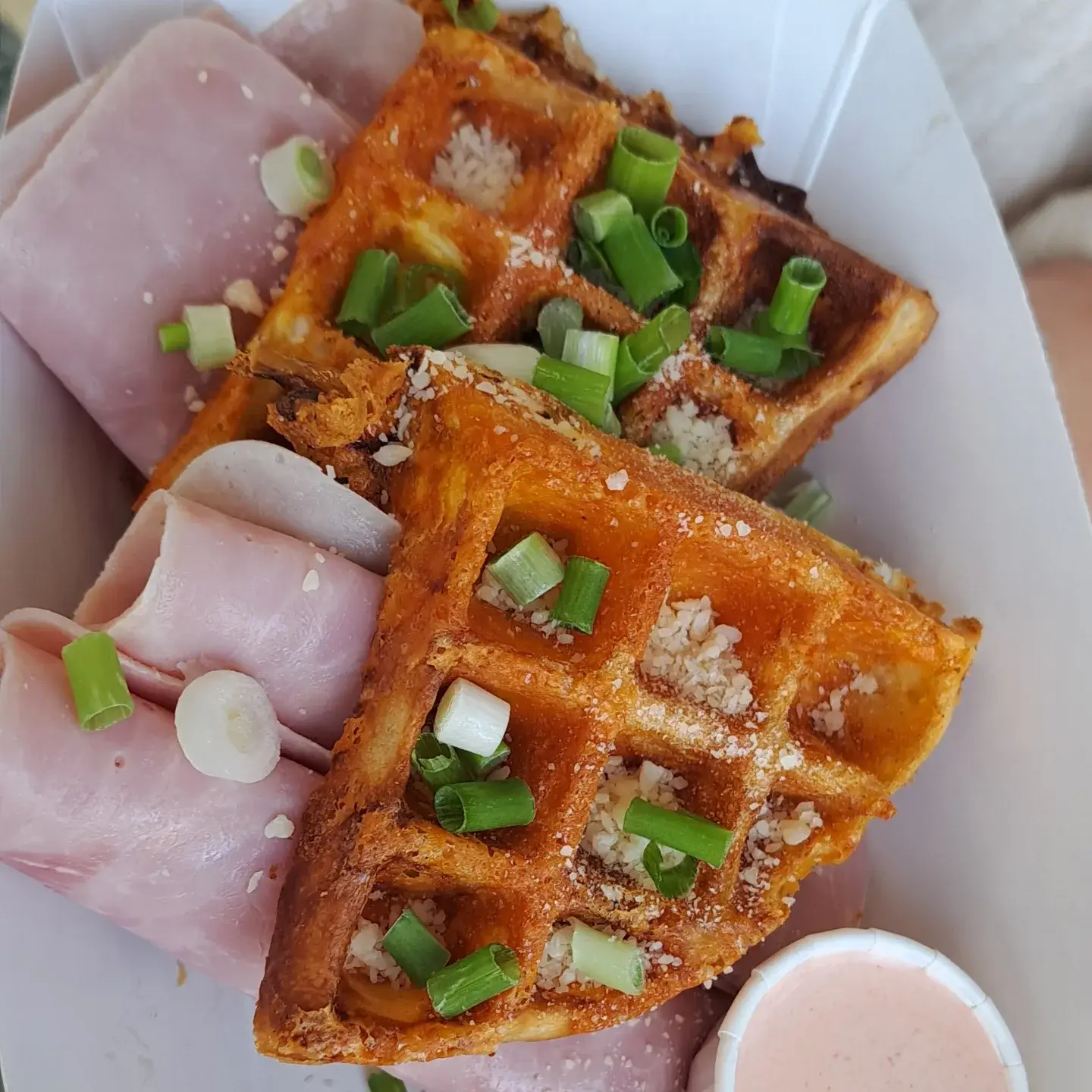 Choose from a variety of sweet and savory toppings to create your perfect waffle.