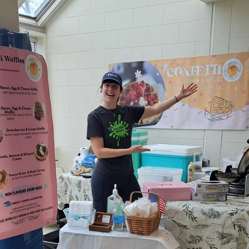 Do you want to enjoy Confetti Waffles any time of the day and week, then preorder a 5 pack or 10 pack of mini waffles to pick up at the Orleans Farmers Market ๐